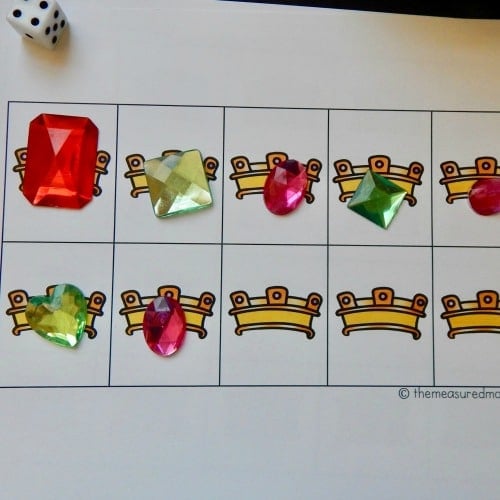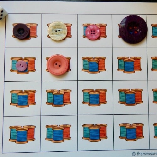 To play, simply print a game board and provide a die and small counters. You can choose a different sized grid depending on your child’s ability level. In the downloads below, each grid comes with 9 spaces, 10 spaces, 15 spaces, and 20 spaces.