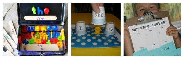 25 – Go on a simple sight word hunt by matching the sticky note sight words to the words on a clip board. (This one’s a favorite at our house.)