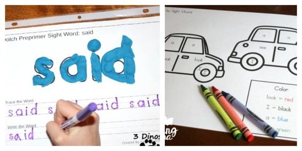 Once you’ve taught the words with attention to the spelling patterns (these sight word worksheets are also great for this), you’re ready for these low prep sight word activities that you can put together in under 15 minutes!