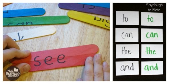 9 – Make a sight word memory game. Just write each sight word on two different index cards. Then turn the cards over and invite your child to find the matches.