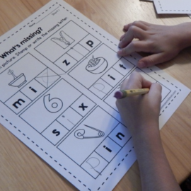 I love these cards, thank you! If you are teaching on a carpet, you can use chalk to make the jumping lines instead of painter’s tape. I use it all the time! Another chalk activity is to make letter boxes and sort objects by their first, last or middle sound.