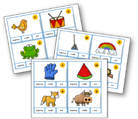 - Your child can point to or clip the word “beginning,” “middle,” or end” to show where the sound occurs within the word.