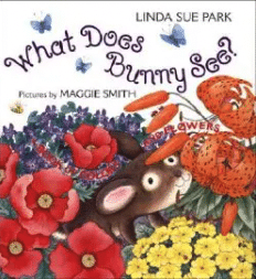 In this cheerful rhyming book a bunny hops around a garden, finding flowers and plants of every color.