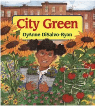 This is nice story about multicultural kids who work together to plant vegetables in their community garden. They celebrate when their vegetables grow and enjoy a giant feast with the harvest. I like the folk art style illustrations.