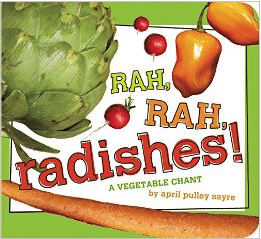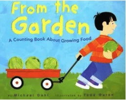 This is a really fun rhyming book to help kids identify garden veggies. “Oh boy, bok choy!” “Root for rutabagas, bounce for beets! Pile up parsnips. Turnip treats!” It might be fun to read the book, then go back and hunt for a particular vegetable.