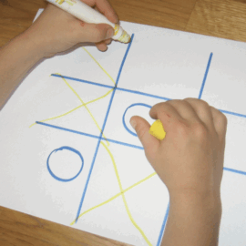 Grabbing those clothespins is a bit tricky at first! After a few tries my Three started grabbing the pins on the pinching side without having to flip them around.