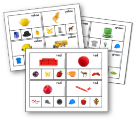 Have your little learner name the color of the picture at the top and then clip the picture at the bottom of the same color.