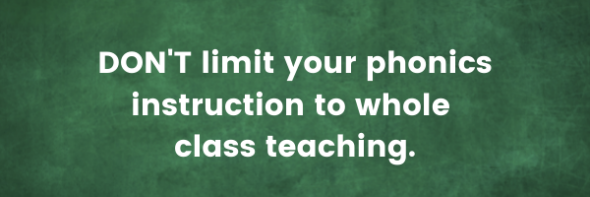 DON’T limit your phonics instruction to whole class teaching. If all of your students have the same level of phonics knowledge, go ahead and stick to whole class teaching. But I’m willing to bet that they’re all over the map. Focused small group lessons will accelerate student growth. Find at least one other teacher or interventionist to work with you (iyou can group across your classrooms).