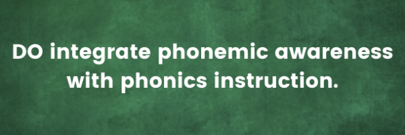 Finally, DO integrate phonemic awareness with phonics instruction. You can do that with activities like phoneme grapheme mapping or by doing a related phonemic awareness task before you teach a new phonics skill.