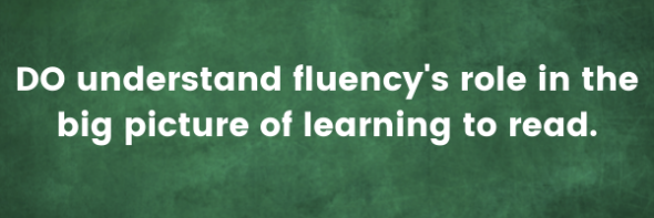 - DO understand the role of fluency in the big picture of learning to read. Fluency is the bridge to comprehension.