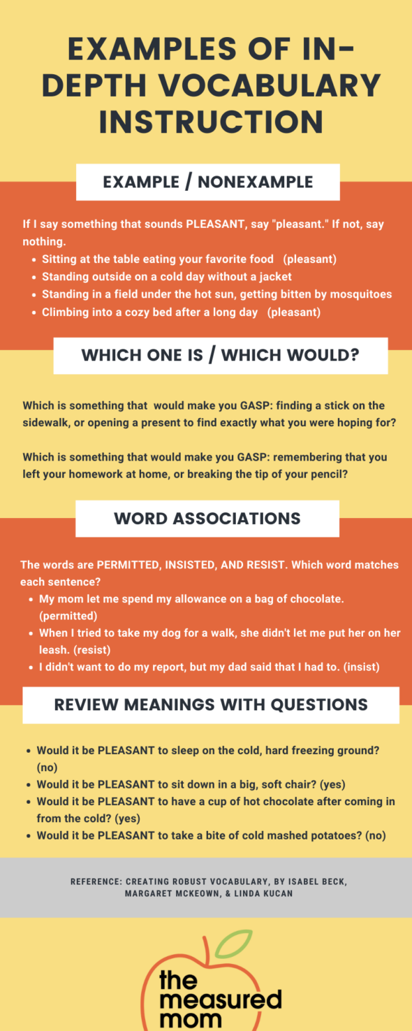 By unplanned, I mean that you teach the meaning of a word because it’s clear that your learners need it defined – and not because you planned the instruction ahead of time. When you’re reading and it’s clear your students need a word defined, you can do one of the following: