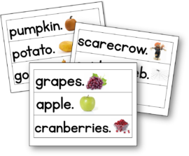 These free pocket chart sentences will help your preschooler learn some basic Fall vocabulary. We hope you have fun with them!