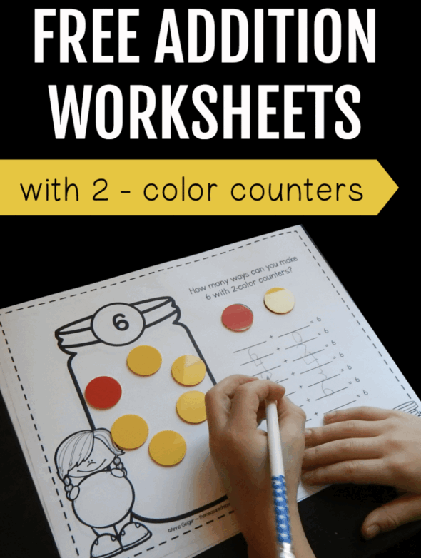 Today I’m sharing a set of simple worksheets that your learners can use with 2-color counters. They’re perfect for helping students understand the concept of addition – and generate their own equations.