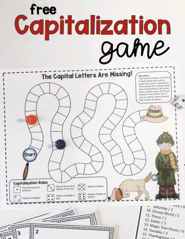 Try this fun game to teach and review capitalization rules in first, second, and third grade.
