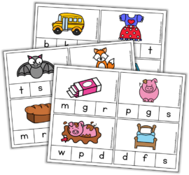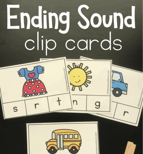 My four-year-old does really well identifying the beginning sounds in words, but ending sounds are a bit trickier. My match the ending sound cards helped quite a bit, but I’ll keep creating activities until this is easy for her.