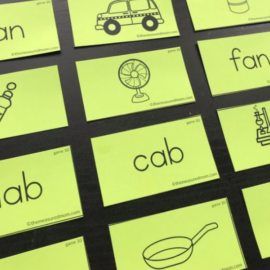 Just print the strips front to back on regular paper. Have your child read the short o word first. (My son said “smoke” initially, so I had him slow down and tell me the sound of the o.)