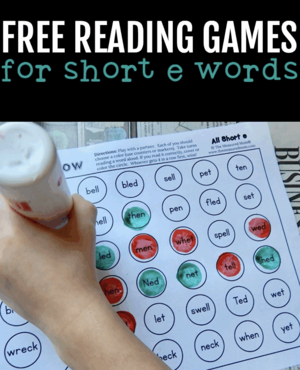 If you’ve seen our other four-in-a-row games, you know that each one comes with a game for each word family. To play, take turns reading a word and covering or dotting with a Do-a-dot marker.