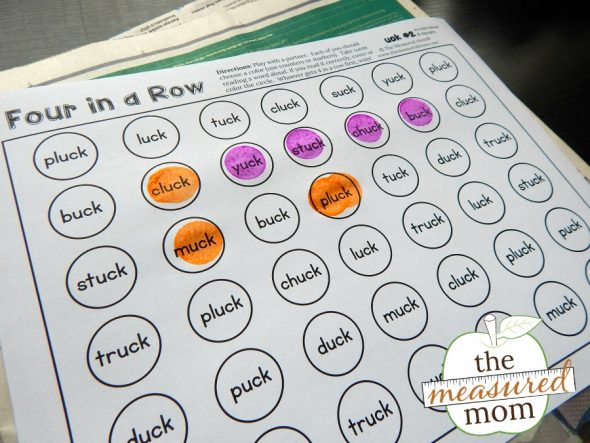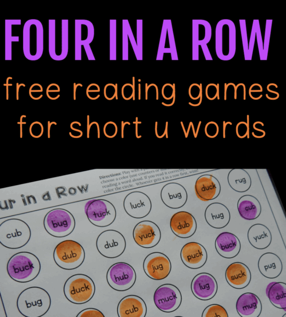 Today I’m sharing my final set of short vowel four-in-a-row games. They’re a fun (and quick!) way to review single-syllable short vowel words.