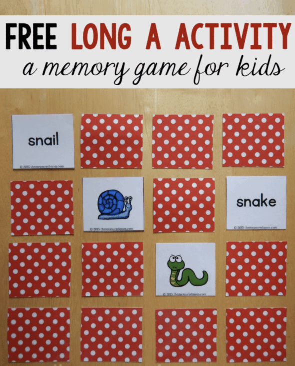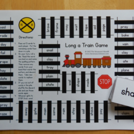 This game is a great review of those tricky long a patterns (a-e, ai, and ay). With lots of exposure to the words, your child is more likely to remember their spellings. (This would also be a great game for kids learning to read words with long a!)