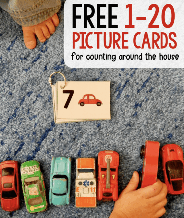 I didn’t share every picture, but we counted 20 different sets of objects! We hope you can use these counting cards at your own house. Have fun!