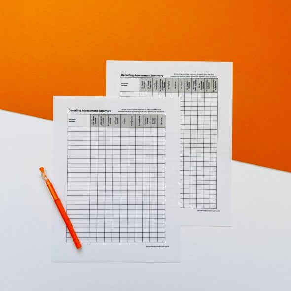 3- After you’ve assessed your students, write their names and scores on the Decoding Assessment Summary page. You can use this data to decide where to focus in intervention OR to help you form your differentiated, needs-based small groups for Tier 1 instruction (contrary to popular belief, Tier 1 phonics instruction does not have to be delivered to the whole class).