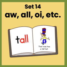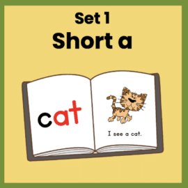 I created these books back in 2014, before I had done a deeper study of phonics and long before I received my training in Orton-Gillingham (a structured approach to teaching phonics). I am currently working on a creating a full library of decodable stories. Find the newer decodable stories here. When the full set of decodable books with custom illustrations is complete, these older books will disappear. This is because the newer books are far superior; not only do they tell actual, interesting stories, but they also have a better way of introducing high frequency words and follow a superior scope and sequence.