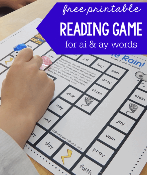 Did you see our War card game for ai and ay words? Today I’m sharing a simple follow the path game that teaches the same phonics patterns.
