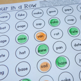 Yay! We’re at the last of our Four in a Row reading games for silent e words! This is a small set for u-e words. There just aren’t many words that fit this category, so I included just two games in the download.