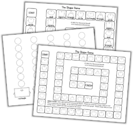 I printed the advanced version for my Six, who is entering first grade. In addition to the basic shapes on the simple version, the advanced version also includes the hexagon, octagon, pentagon and rhombus. Also, the game board is longer and demands a longer attention span.