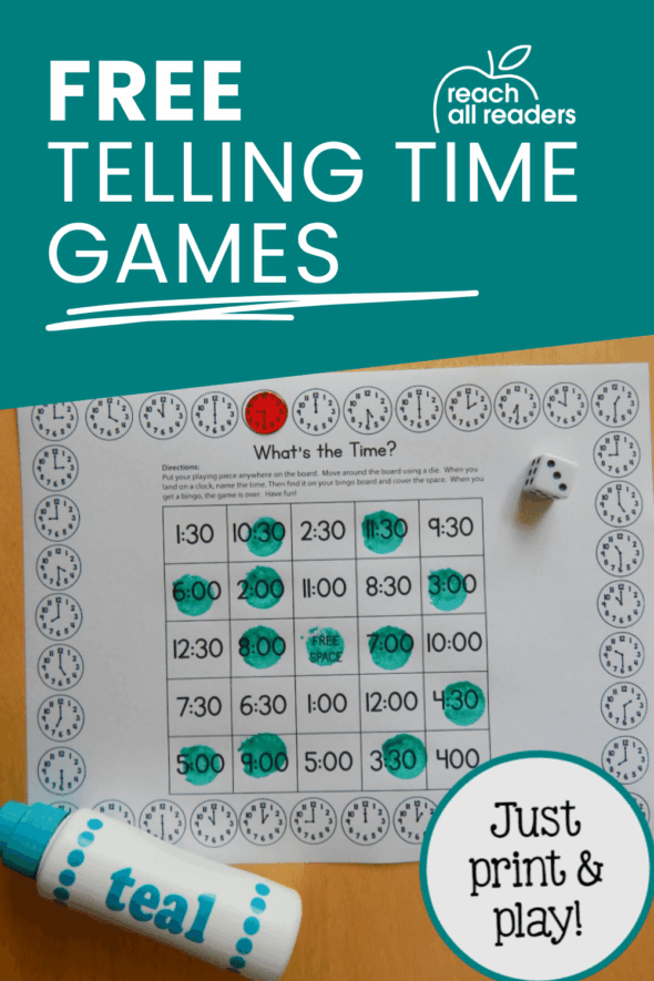 Do your kids struggle with learning to tell time? I had forgotten what a tricky skill this is until I started teaching it to my own children. But all three of my big kids (going into kindergarten, first, and third grade) pronounced this game “fun.” I hope your child or students like it too!