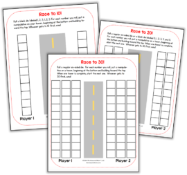 Today I’m sharing a fun math game for kids ages 4-6 – Race to 20!