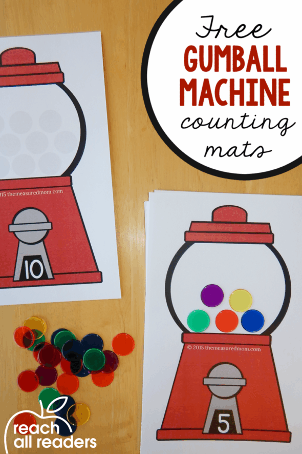 I created ten gumball math mats, each with a number printed on the bottom. Then I put the matching number of gray circles inside the machine.