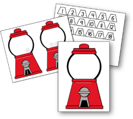 I created ten gumball math mats, each with a number printed on the bottom. Then I put the matching number of gray circles inside the machine.