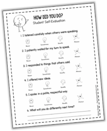 Here’s something to try! Ask your students to evaluate their participation in a book discussion. This could be a whole class, small group, or partner discussion.