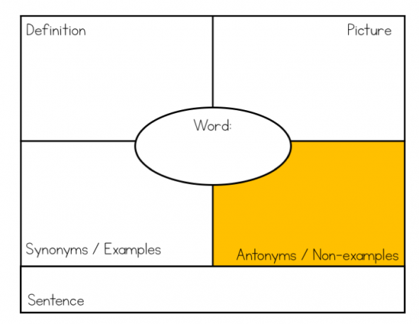 A tip: You might have students work in small groups to find synonyms/examples and antonyms/non-examples. Then pull the whole class together to compile a master list. As a group, choose the best two synonyms/examples and antonyms/non-examples for your students to record in their journals.
