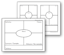 Kid-friendly is the key word here. Please, please, please do not have your students copy a definition from the dictionary. More likely than not, they will choose the wrong definition. Instead, have them write the definition that you gave them as part of your vocabulary lesson. Or, if they’re able, have them rewrite it in their own words.
