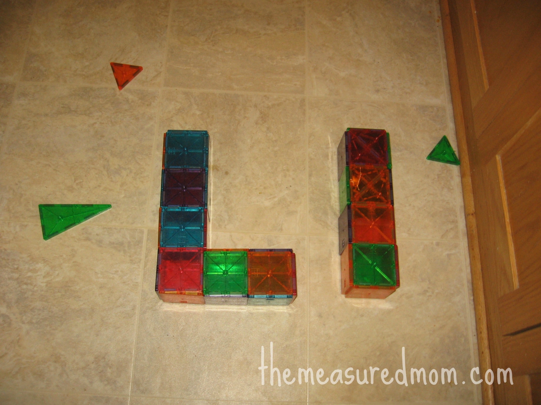 These are three-dimensional L’s made from Magna Tiles. Have you ever heard of them? I’m not one to collect expensive toys, but these are wonderful and worth it. Just don’t try to buy too close to Christmas. I put it off one year and the Amazon price nearly doubled as Christmas came closer!