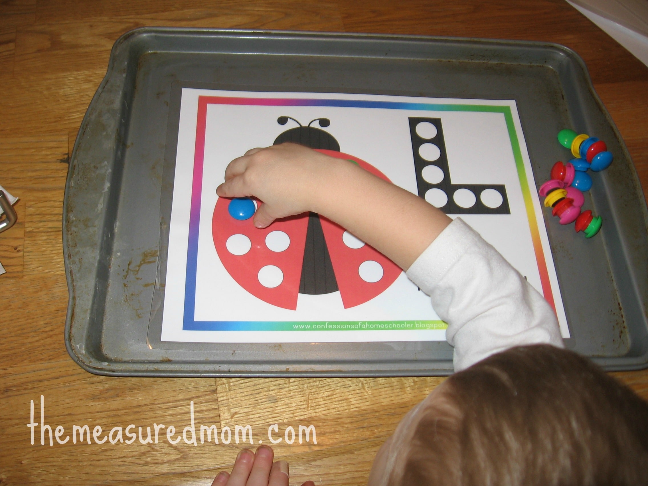 Then we grabbed our power magnets and did a ladybug magnet page, also from Confessions of a Homeschooler.