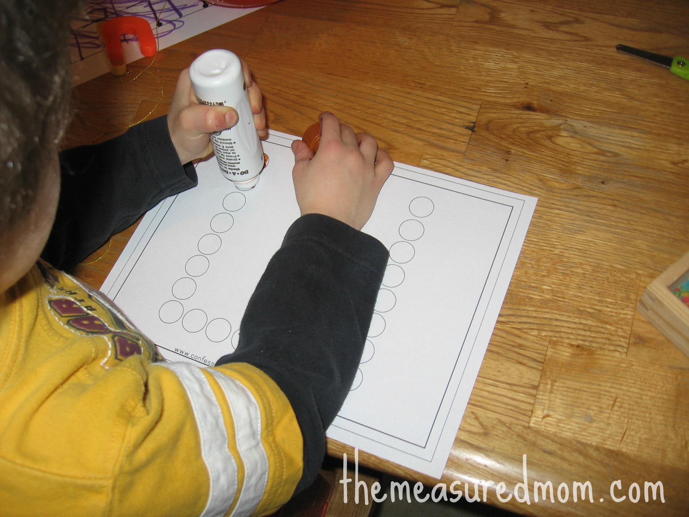 We got out our Do-a-Dot markers and did this page from Confessions of a Homeschooler.