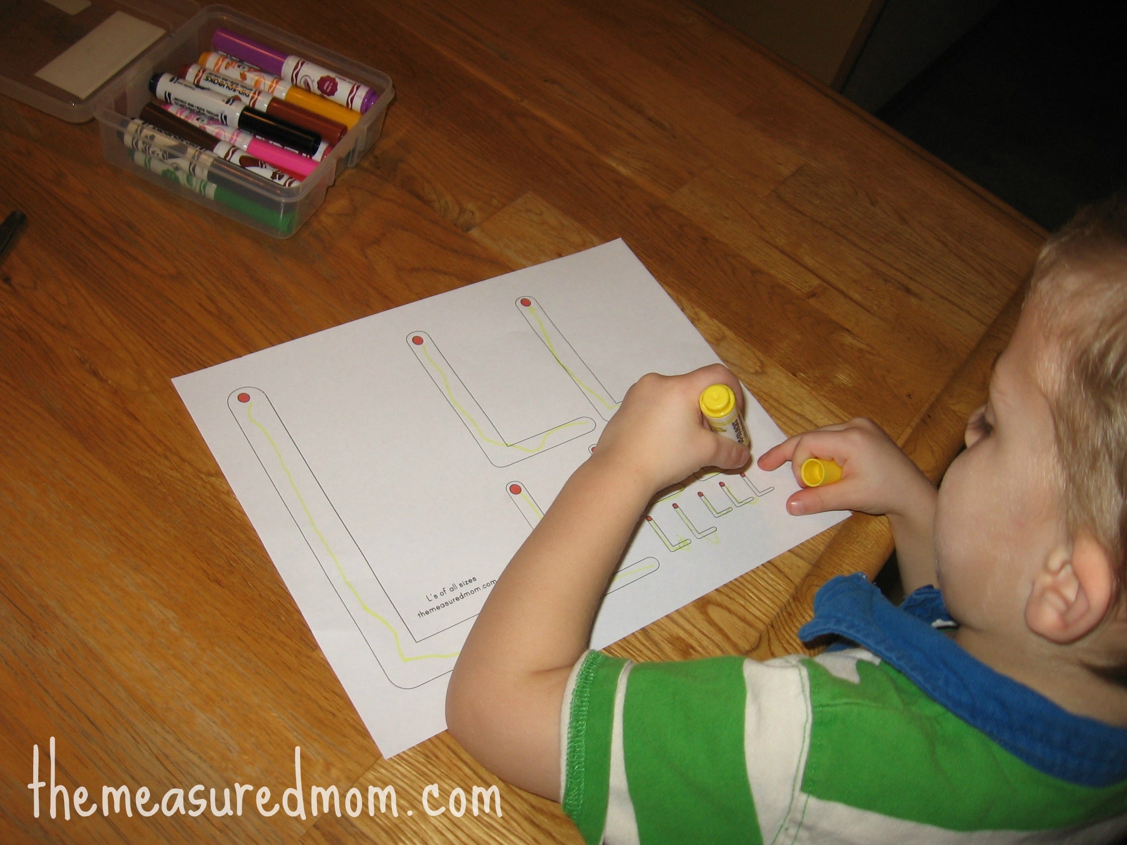 My Two and Four are both learning to write the alphabet. We love to find new and interesting ways to make letters — and we always throw in some old favorites. Here are eleven ways to make the letter L!