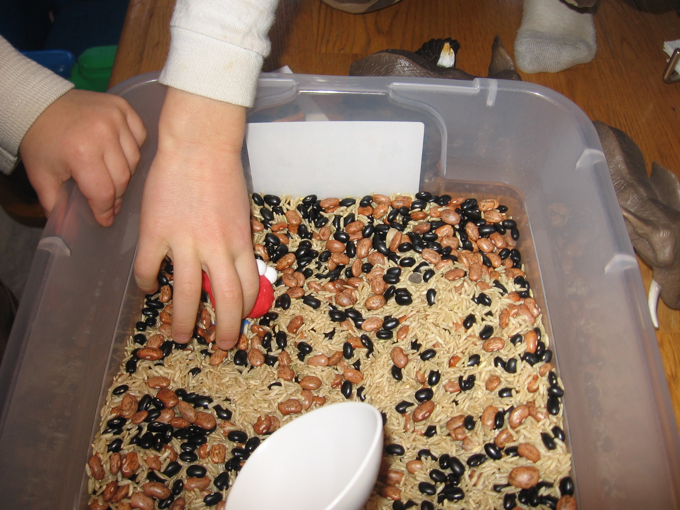 Yes, I save the rice and beans for future sensory boxes. I used these for Farm in a Box (https://reachallreaders.com/farm-in-a-box-letter-f-sensory-bin/). They would also work well for Letter Alphabet Hunt & Match (https://reachallreaders.com/letter-hunt-match-a-whole-alphabet-activity-for-toddlers-preschoolers/).