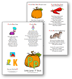 Peter, Peter, pumpkin-eaterHad a wife and couldn’t keep her.He put her in a pumpkin shell,And there he kept her very well.How to assemble my Little Letter Books: