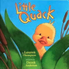 Little Quack and his siblings are nervous because today is the day they learn to swim. Finally, at the end of the story, Little Quack musters enough courage to jump in the pond. “I always knew you could,” Mama said. A little too cutesy for my taste, but my Two and almost-Four requested it many times.