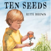 I thought this book was so beautiful and creative I had to show it to my husband (he has a huge garden, so I knew he’d appreciate it). Ten seeds are planted, but on each page something happens to one of them. A mouse digs one up, a ball lands on a plant, bugs eat another one, etc. Finally one seed blossoms into a sunflower. Great counting book!