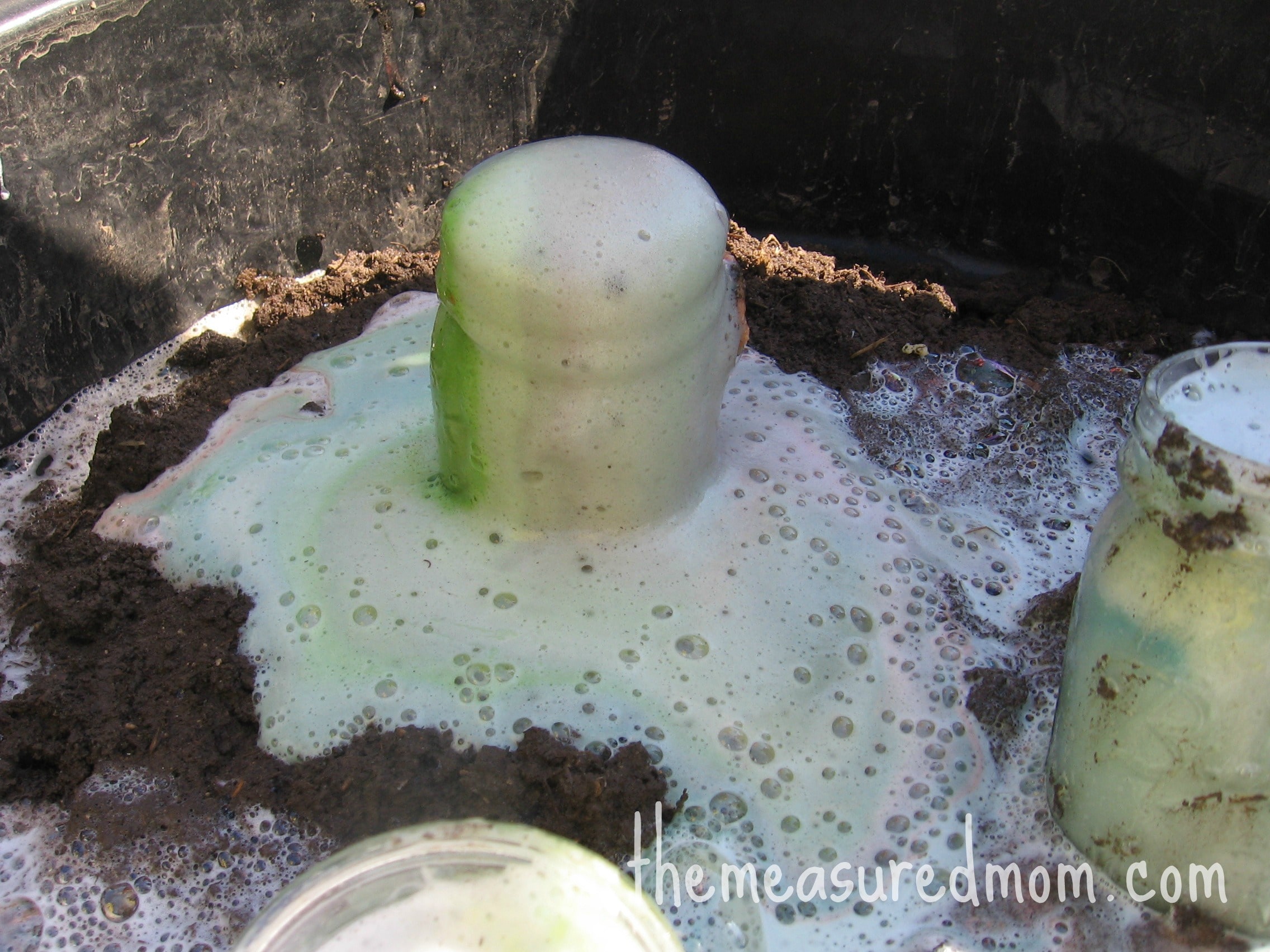 By the way, I did explain that the “volcano” is the result of a chemical reaction between the baking soda and the vinegar which produces carbon dioxide — leading to bubbles.