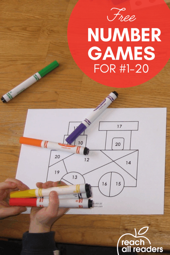 I find it interesting that kids can go from scribbling all across the paper to — one day — coloring inside the lines. And enjoying it! My 4 1/2 year old recently discovered the joy of coloring, so I created this coloring page to use as a math game for kids.