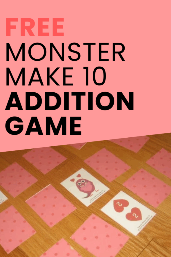 Today I’m sharing a free printable make 10 addition game – with monsters!