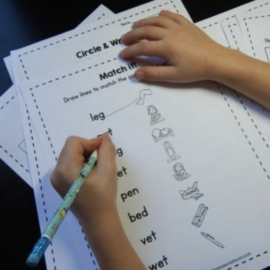 My Five (he’ll be a kindergartner soon!) is starting to take off with his reading. He can read quite a few beginning books using his phonics knowledge and context clues. But he still stumbles on basic phonetic words when he rushes through them.