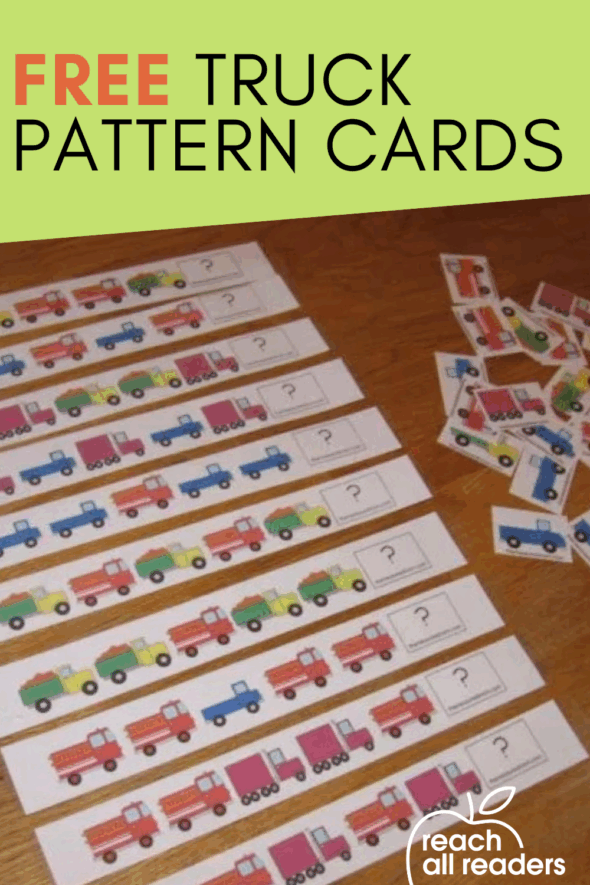 I created this truck clip art and turned it into printable pattern cards for preschool and kindergarten. I have a truck pattern card pack for you to download if you’d like! Zip to the end of this post for the link.