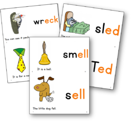 I always leave words with beginning blends for the end of the books, because they’re quite tough. If your child can’t quite get the “sm” to say its sound, that’s not too surprising. Just keep emphasizing that s and m come together as /sm/. Add that blend to the word ending (“ell”) and you get the word smell.
